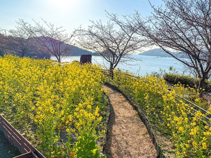 連日寒い日が続いておりますが、下松市笠戸島・潮風ガーデンでは菜の花が見頃を迎え、河津桜も少しずつ咲き始めました。